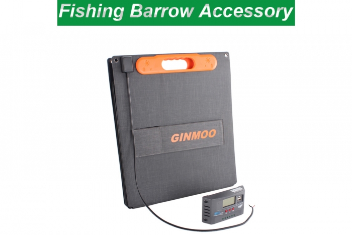 Camping solar panel for charging fishing barrows, bait boats, and a range of lithium batteries 12-24V.